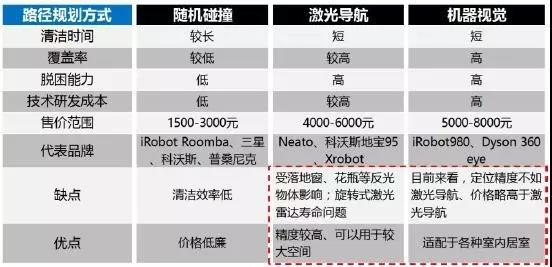 不同技術(shù)方案的掃地機器人特點對比